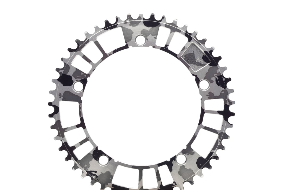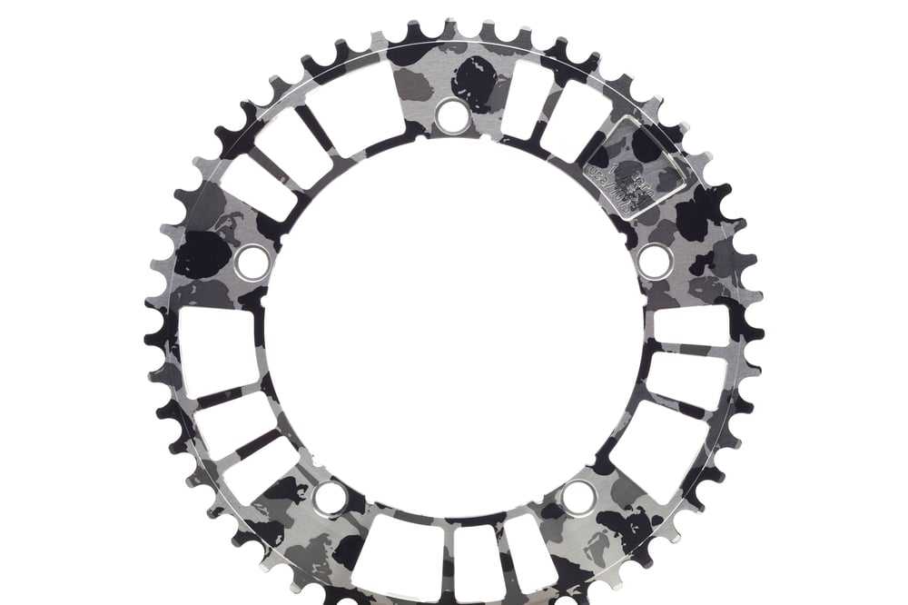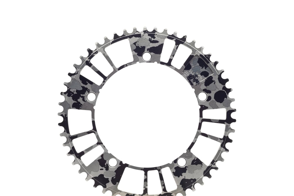 144#47/49/51/53/55 B&W Camo Track Chainring (144BCD//47/49/51/53-Tooth)